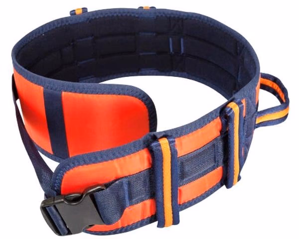 - Cinturones Estándar con Asas: Son los más comunes. Fabricados con materiales resistentes como nailon o poliéster, incorporan varias asas verticales u horizontales alrededor de todo el perímetro para que el cuidador tenga múltiples puntos de agarre. El número de asas suele variar, siendo cuatro o más lo ideal para versatilidad.