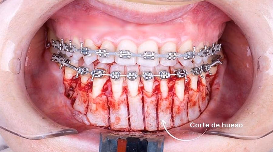 | Procedimiento | Cortes en el hueso alveolar (vía mucosa o directa). | Cortes directos en el hueso, seguido de injerto óseo y cobertura con membranas de fibrina. |