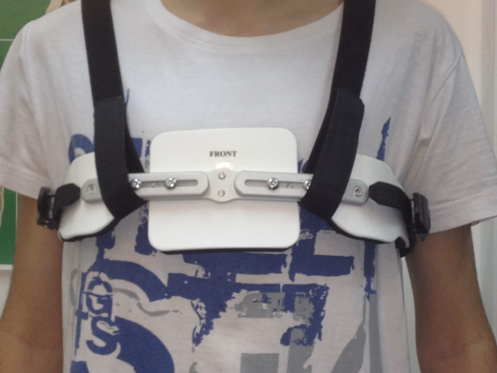 La ortesis para Pectus Carinatum, también conocida como corsé compresivo, es un dispositivo externo diseñado para aplicar una presión constante y controlada sobre la protuberancia del esternón y las costillas. El objetivo es remodelar gradualmente la pared torácica, corrigiendo la deformidad a medida que el paciente crece.